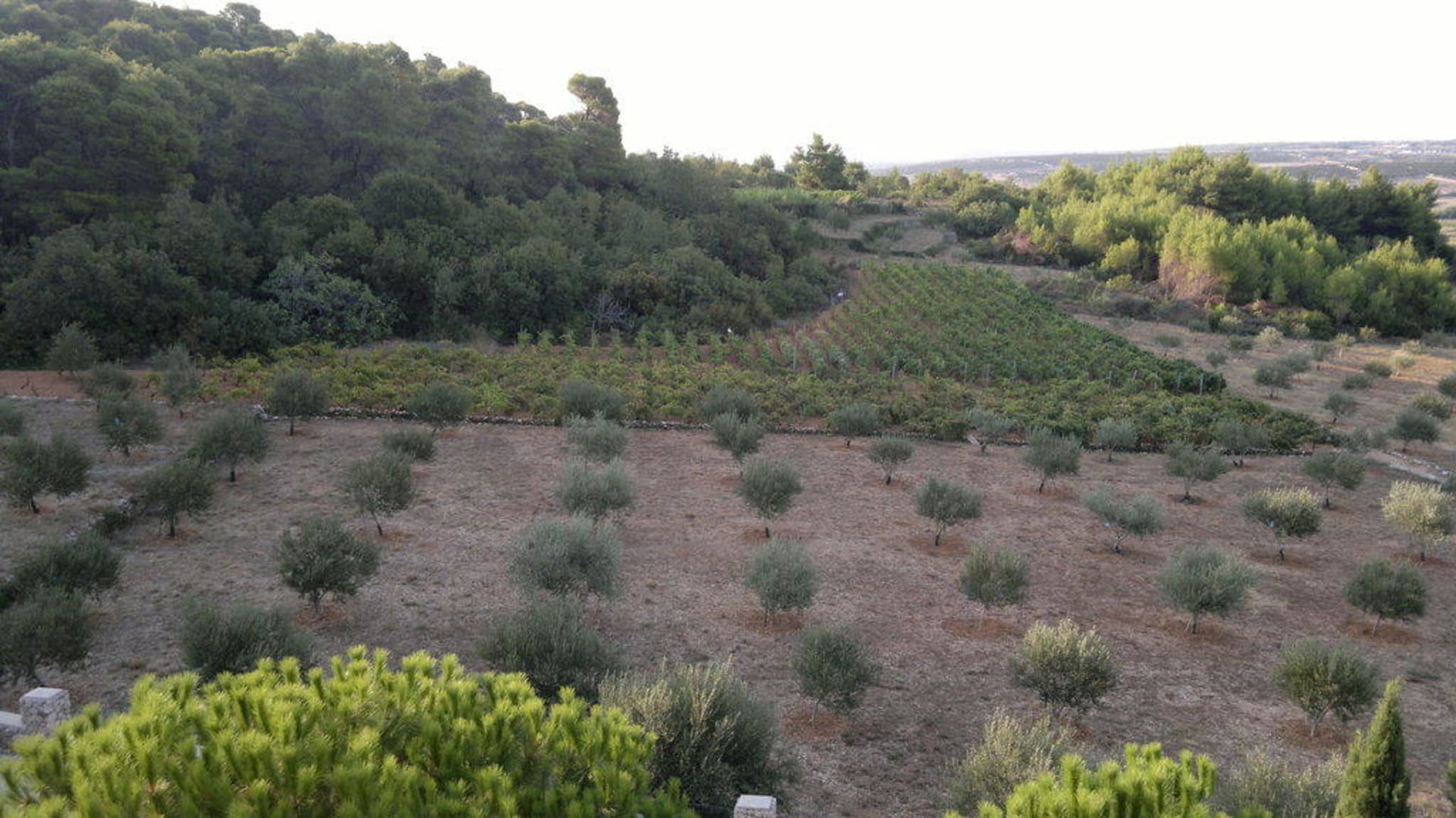 Olivenbäume und Weinberge