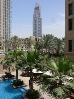 Blick auf Poolanlage und Stadt