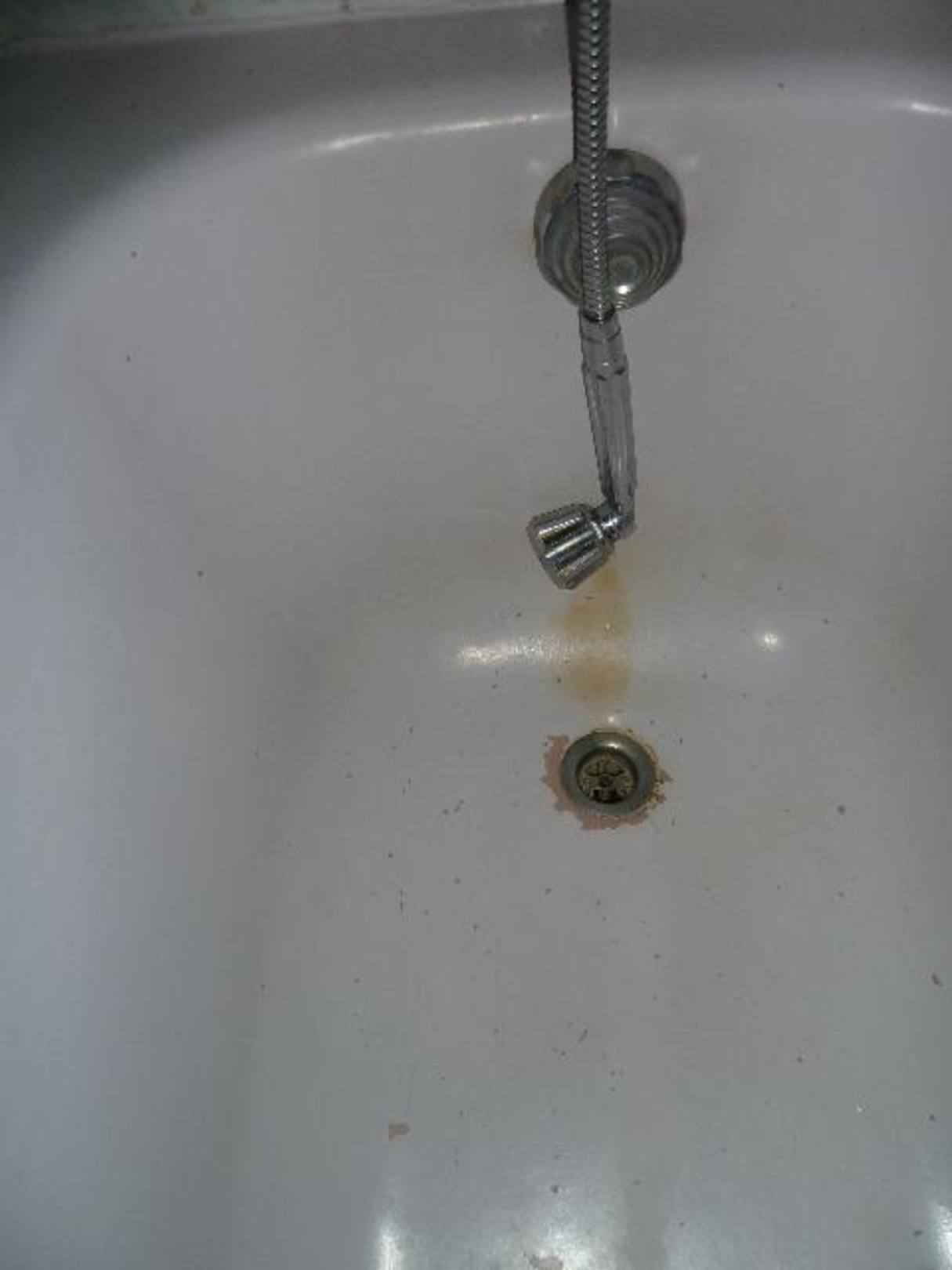 Abgenutzt, überstrichen. Lack der wieder abgeht, Schimmel, Rost und Dreck. Das ist das Bad