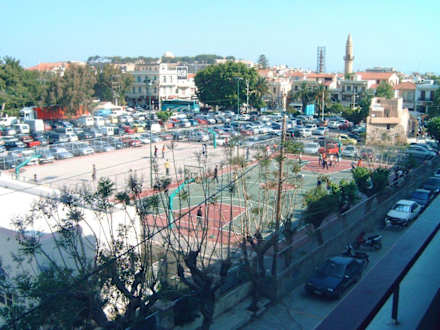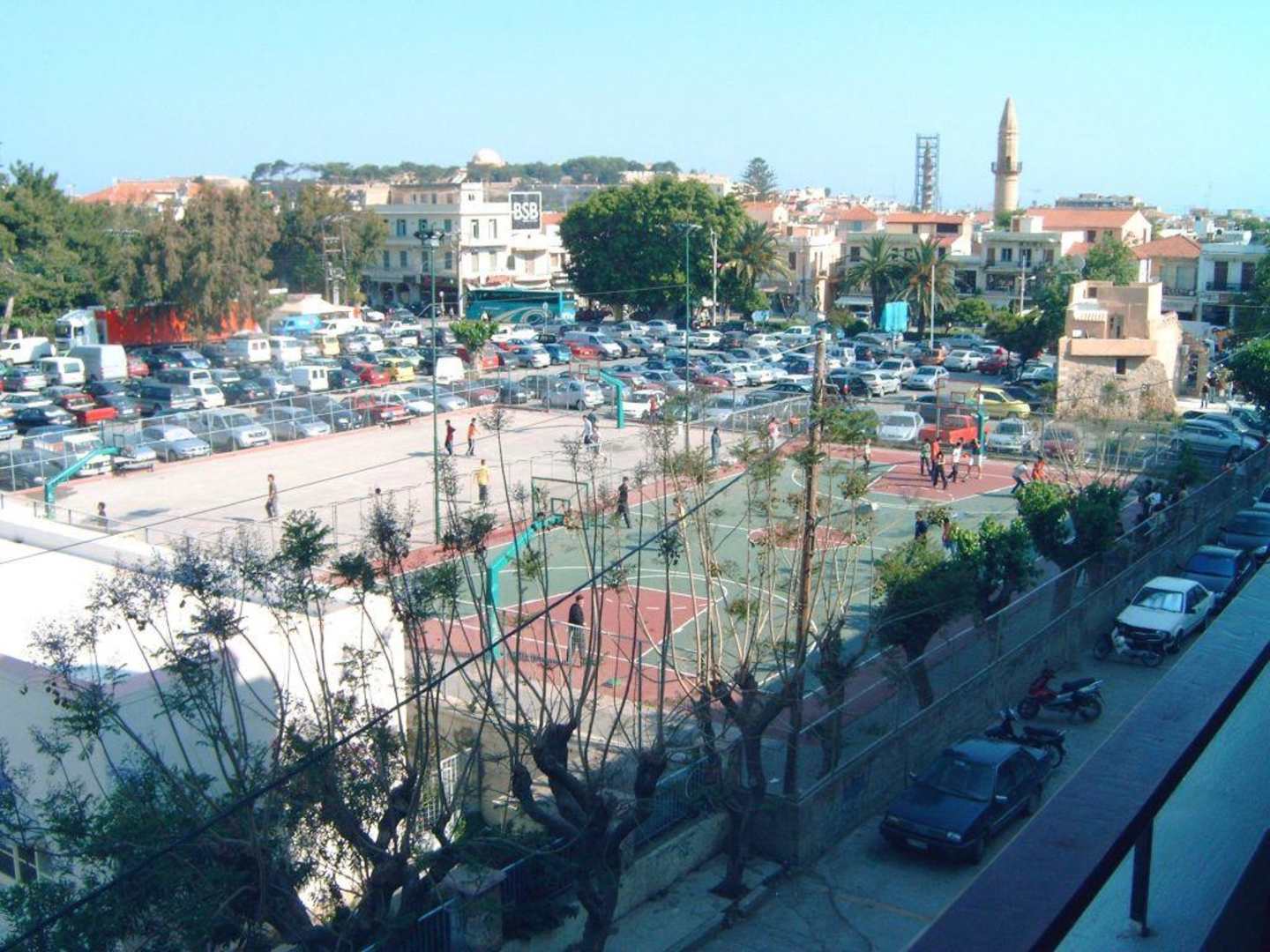 Blick auf die Basketballplätze vor dem Hotel