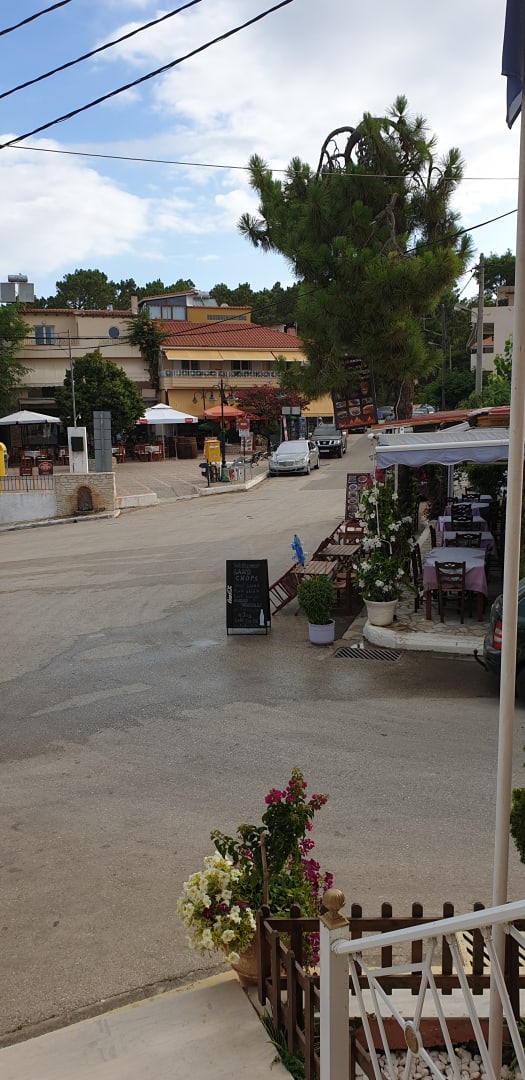 Das Hotel liegt gegenüber der Platia und ist von zahlreichen guten Tavernen umgeben.