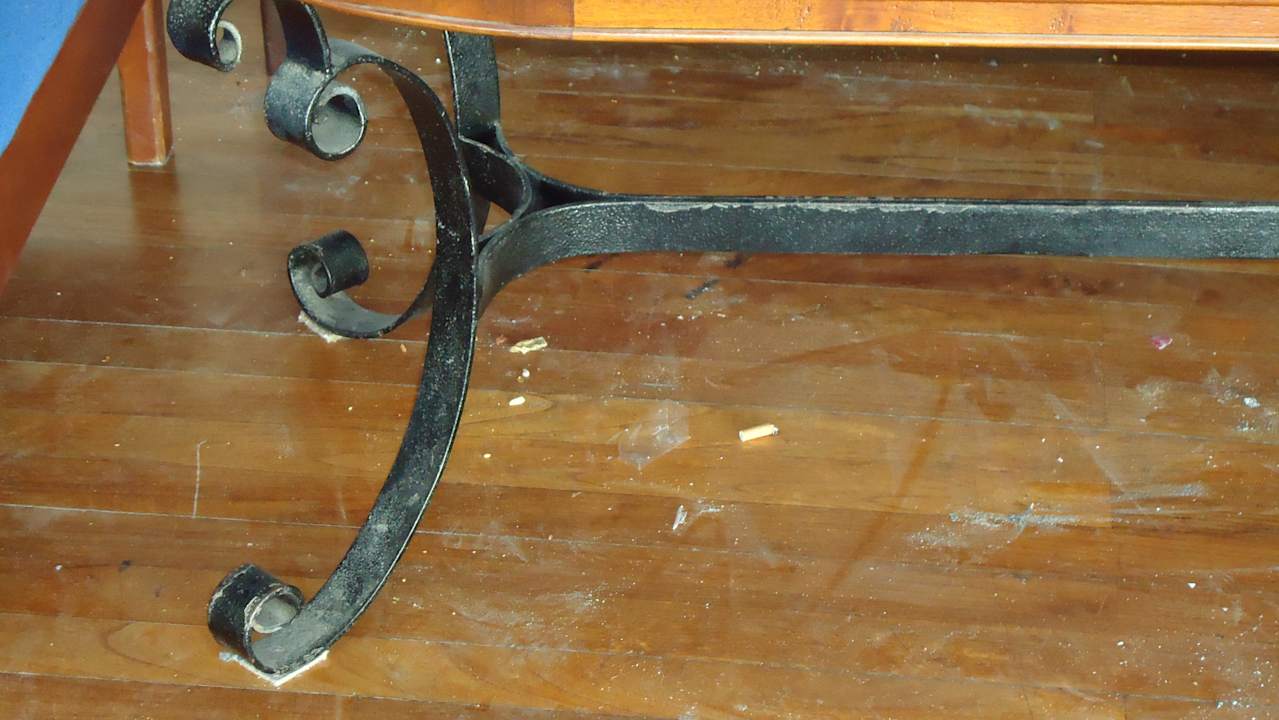 Schmutz nach der Reinigung morgens an der Hotelbar