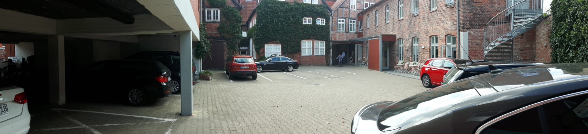 SonstigesHier stand unser Auto günstig und sicher. Innenhof des Hotelkomplexes der als Parkplatz dient.