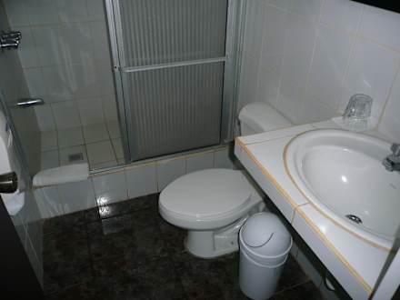 Recht ordentliches Badezimmer.