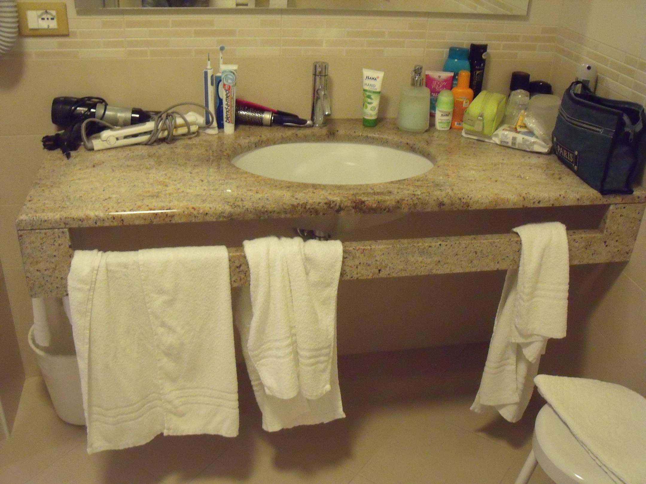 Bad in der Junior Suite; Schönes Waschbecken mit großer Ablagefläche.