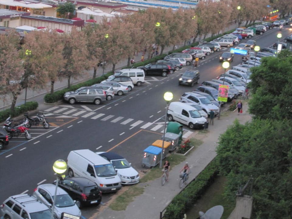 Ausblick auf die Straße zwischen Hotel und Strand
