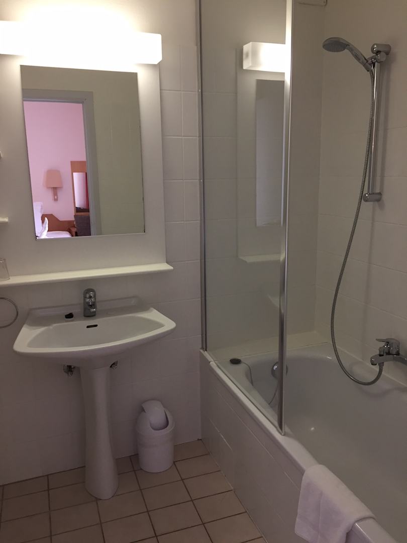 Zimmer 23 - Badezimmer mit Waschbecken, Badewanne incl. Dusche.