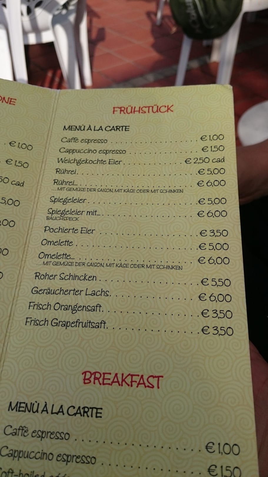 Ein Rührei um 5 Euro zusätzlich