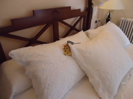 Spitzenkissen im Himmelbett