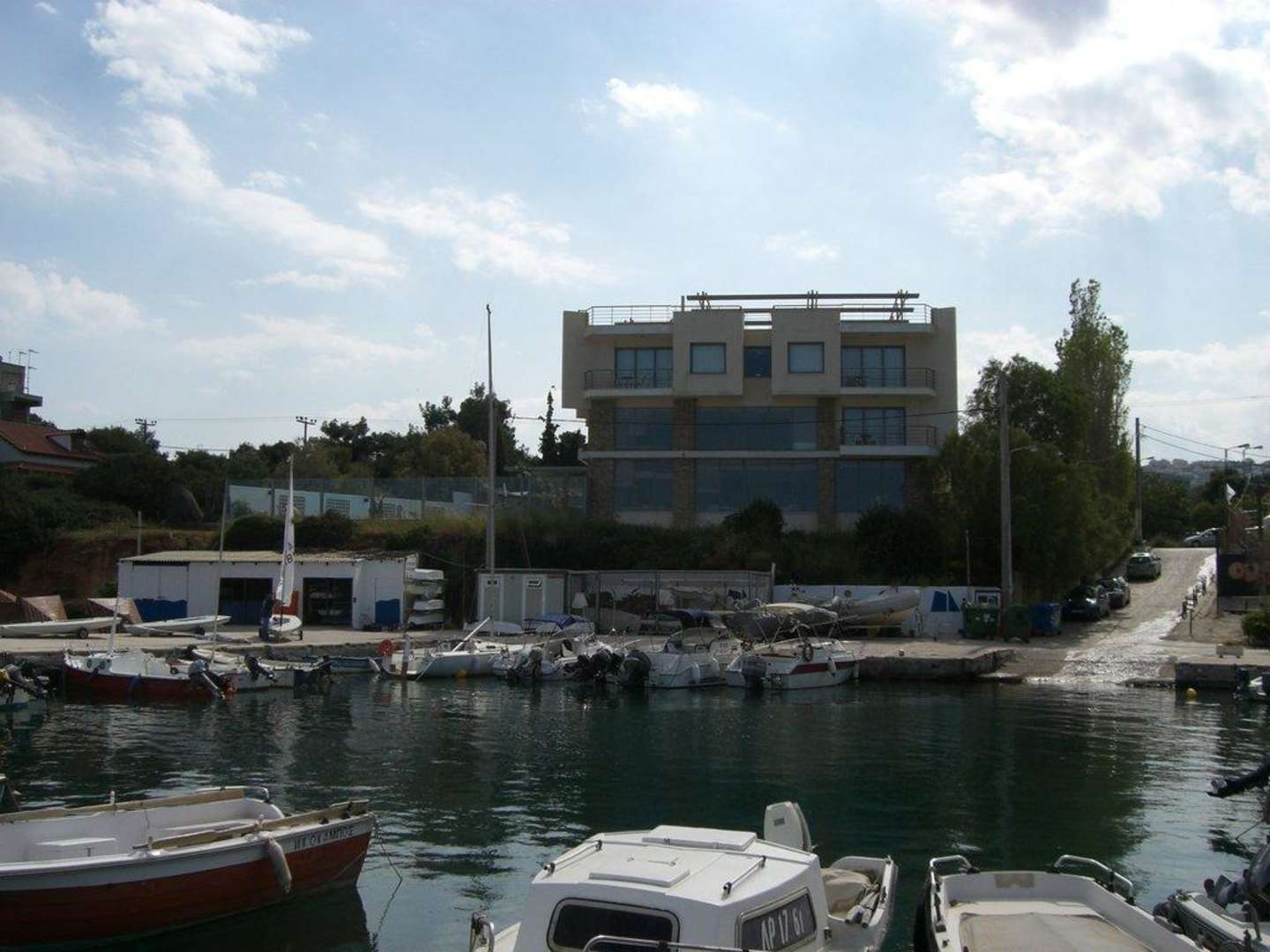 Blick vom Hafen auf das Hotel