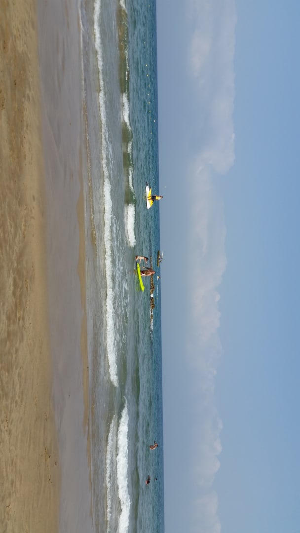 Der Sand ist ganz fein uns es geht ganz flach ins Wasser. Unsere Tochter ist 1.40 m gross und konnte 50-60 m ins Meer laufen. Super geeignet für empfindliche Barfussläufer.