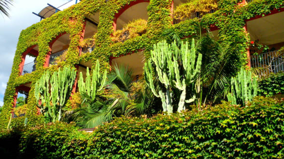 Üppiger Pflanzenbewuchs am Hotel.