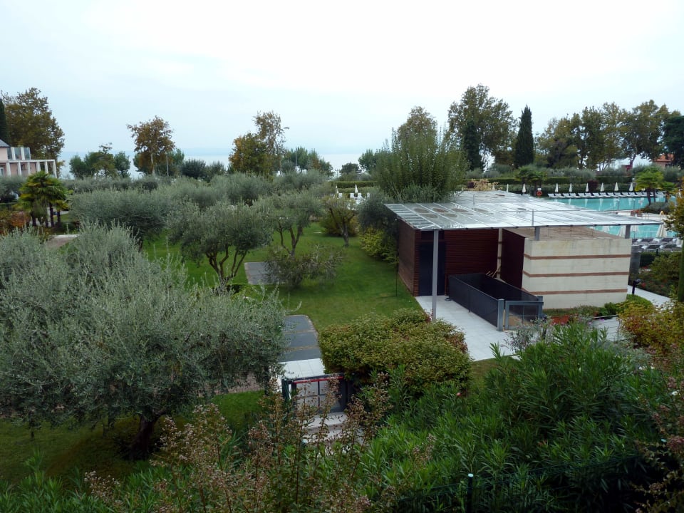 Ausbilck auf Pool und Gardasee vom Zimmer aus.