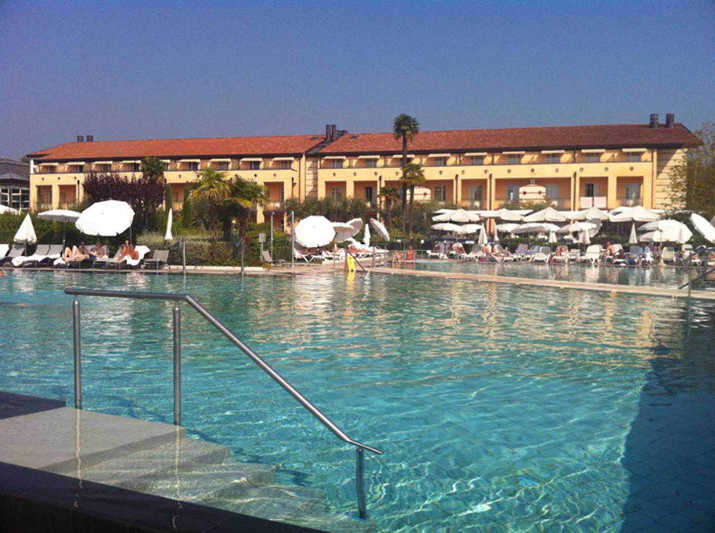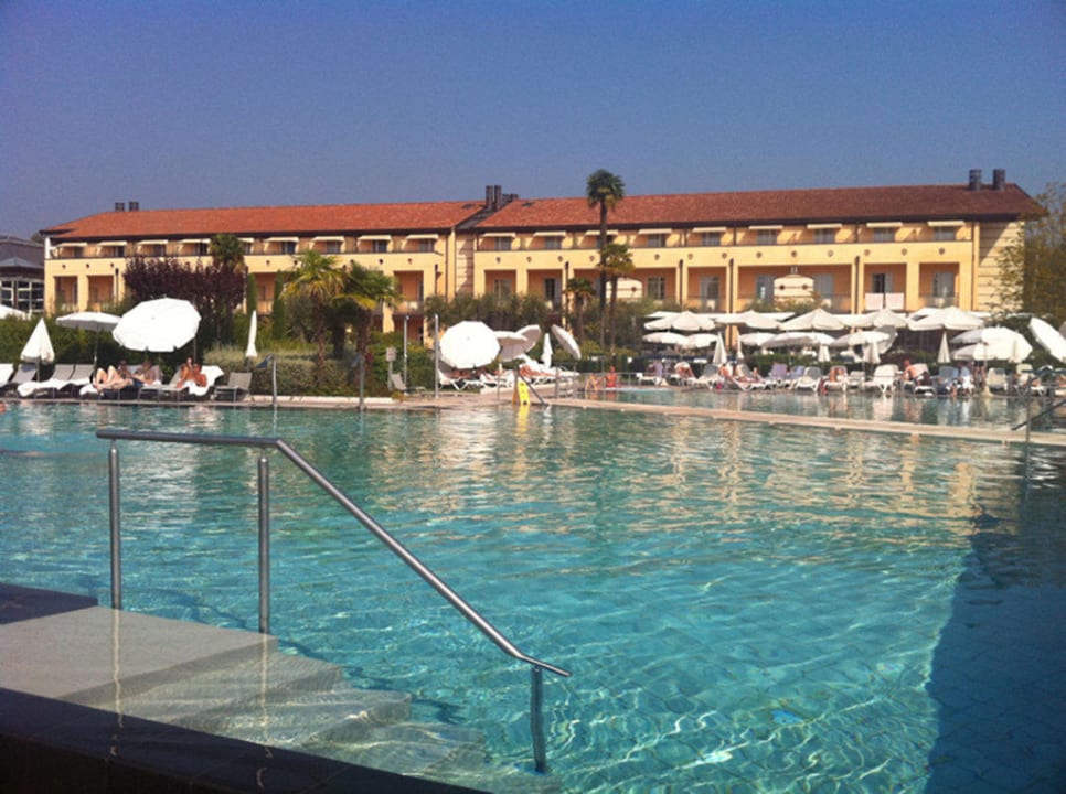 Der Hauptpool mit einem der Hotelhäuser im Hintergrund. Besonders gut fanden wir, dass es immer freie Liegen gab und jede Menge Sonnenschirme.