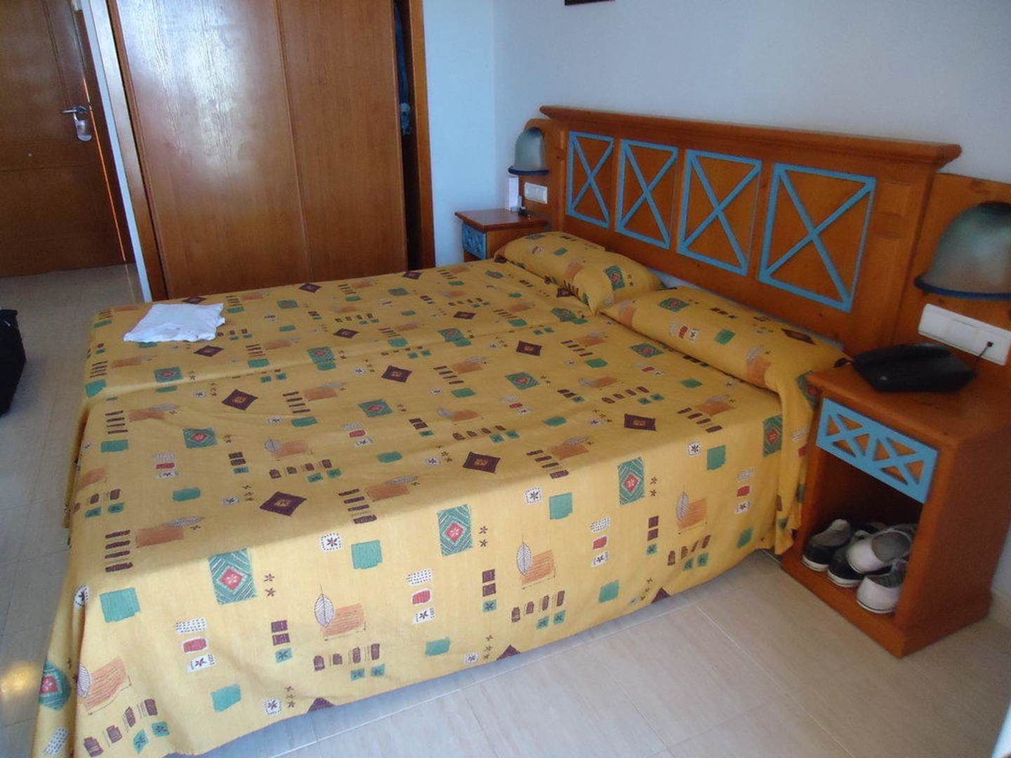 unser Bett im Zimmer