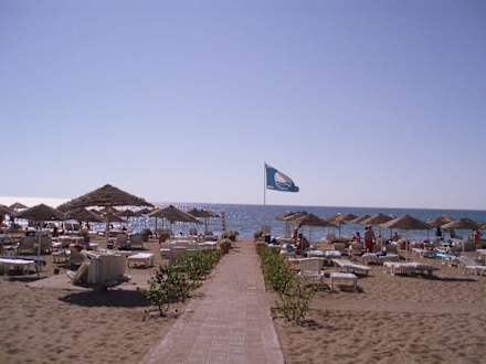 Der Strand des Calypso Beach ist mit der blauen Flagge ausgezeichnet - steht für gute Qualität des Schwimmwassers, sauberen Strand, gute Sanitär- und Abfalleinrichtungen, gute behindertengerechte Einrichtungen, hohen Sicherheitsstandard, ...