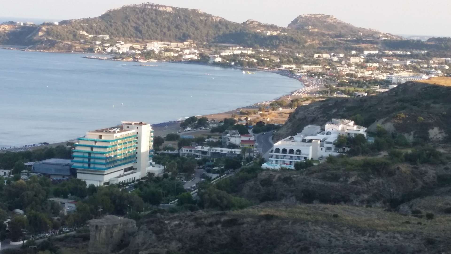 Blick von kleiner Kapelle Agia Sophia oberhalb des Hotels auf Faliraki