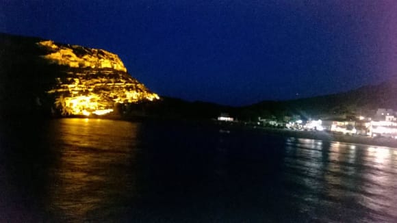 Wunderschön abends zum Shopping und Schnabulieren durch das Labyrinth von Matala zu schlendern von der Südwestspitze der Bucht den Sonnenuntergang und dann den Lichterzauber zu genießen.