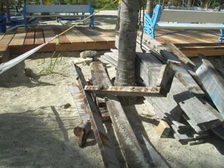 einige Eltern versuchten die Bretter mit Nägeln wenigstens nach unten zu drehen, um so die Verletzungsgefahr für ihre Kinder etwas einzuschränken