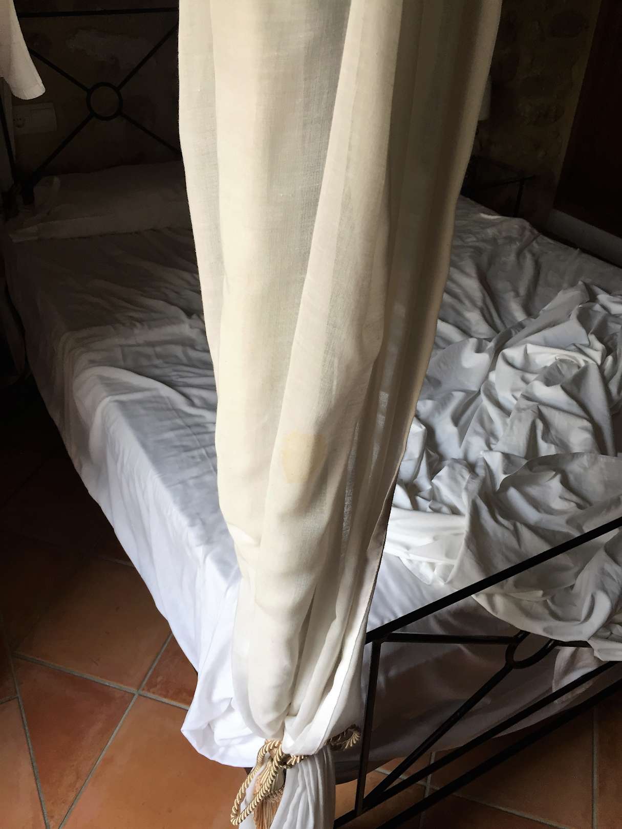 dreckigbeige auf weißem Bettlaken