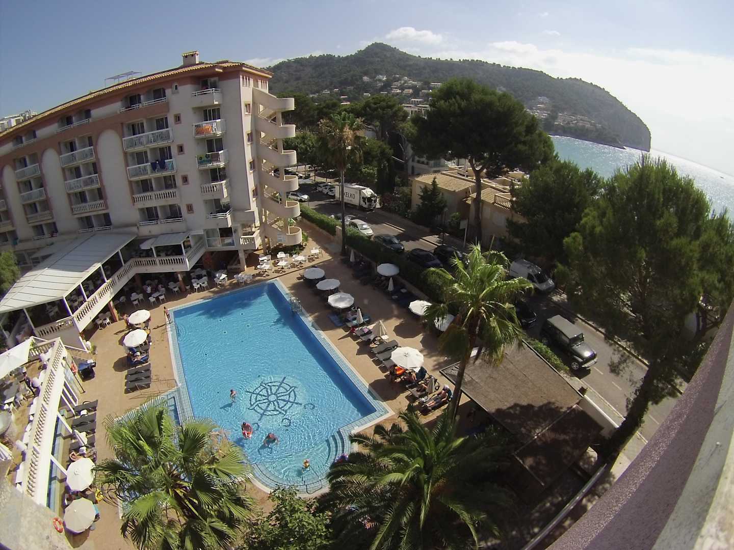Blick vom Pool bis zum Meer und der Höhle von Arta!
