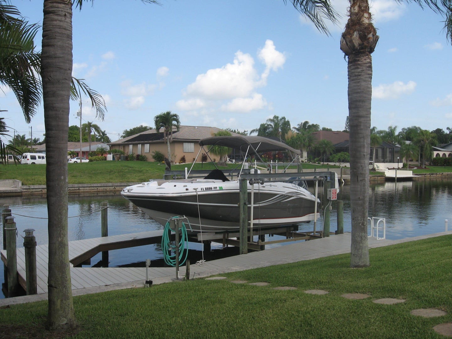 Boot geparkt vor dem Garten