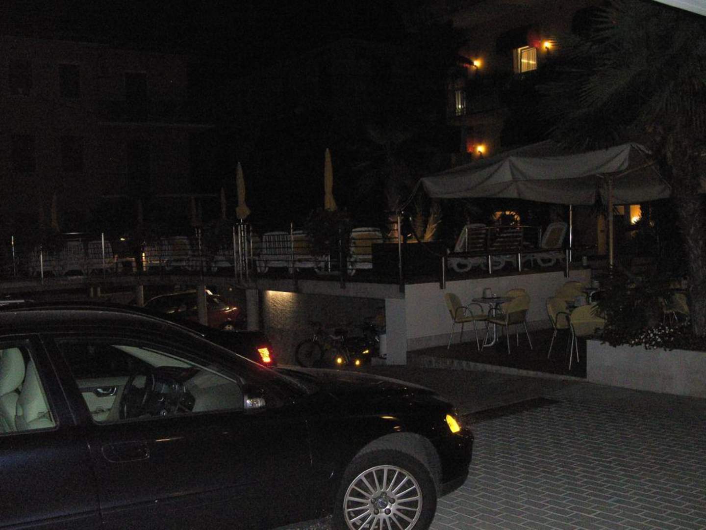 Parkplatz mit darüber liegendem Pool