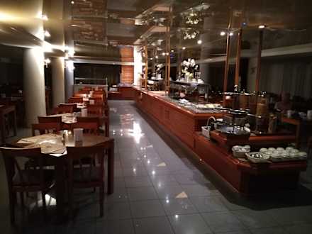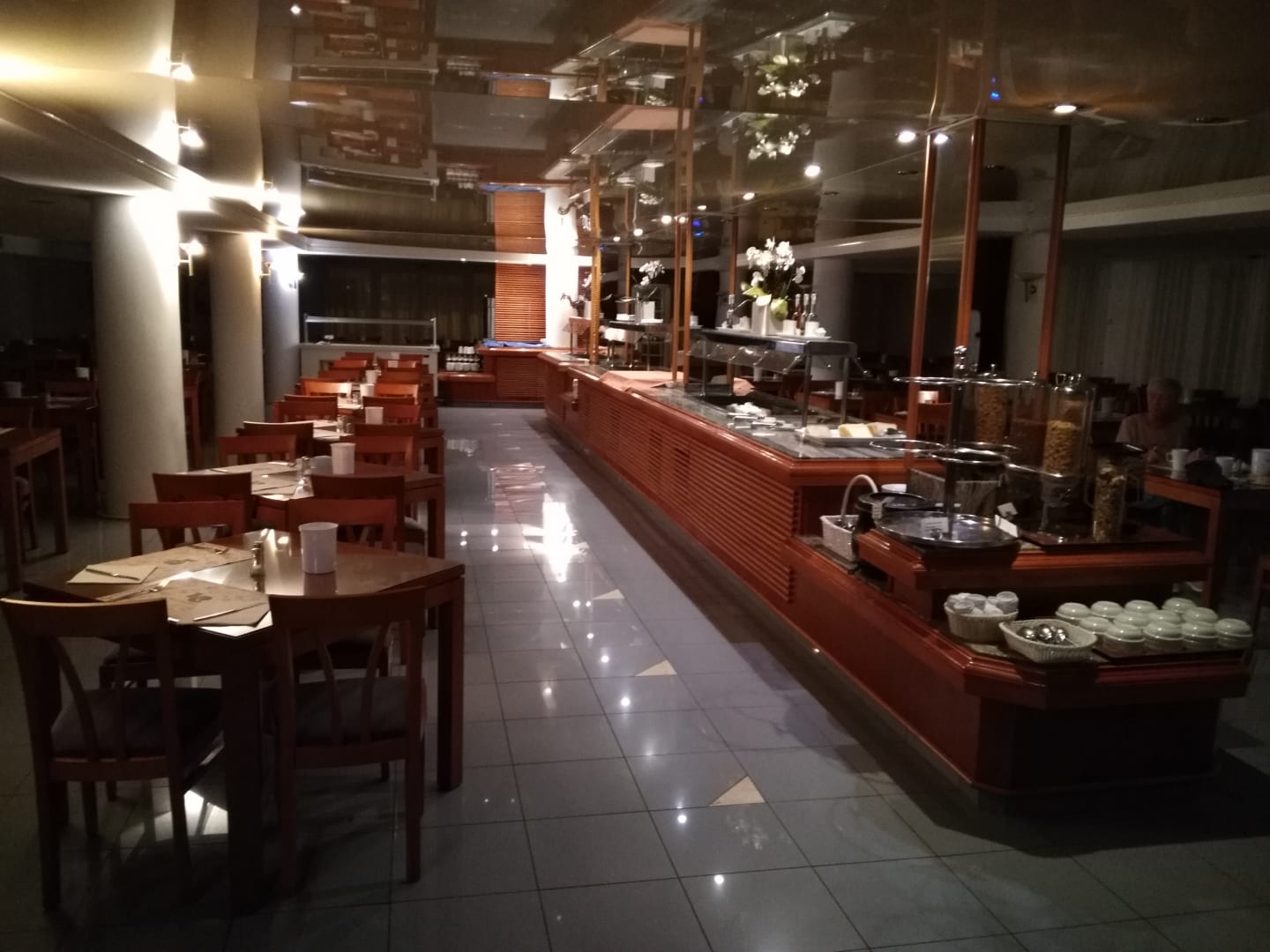 Frühstück im leeren Restaurant nachts um 3.00 Uhr
