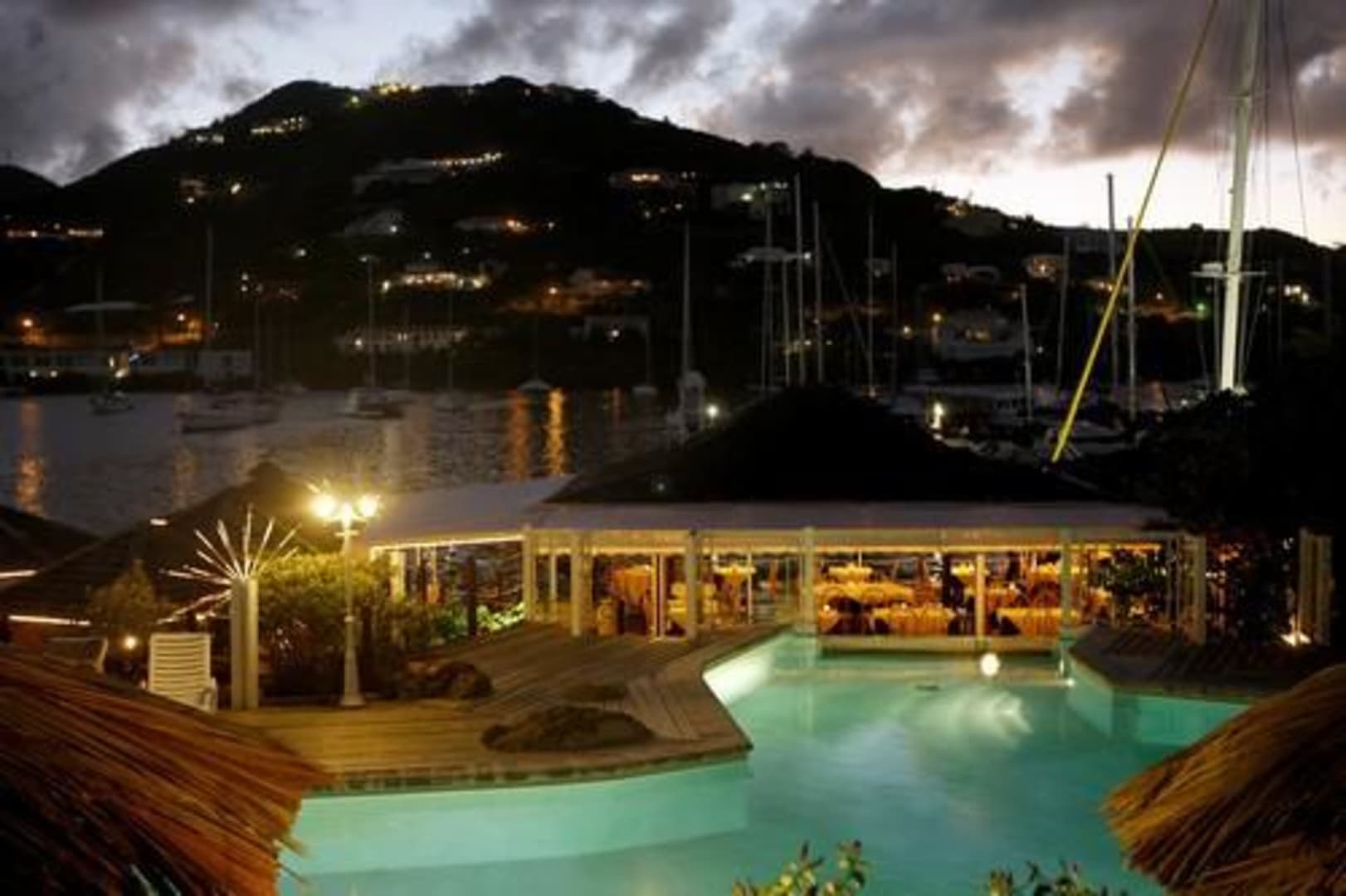 Restaurant by night Hotel Captain Oliver's Resort
