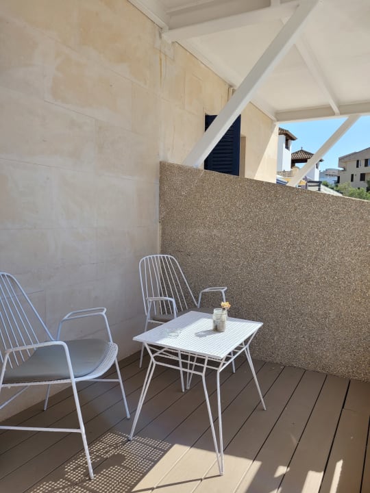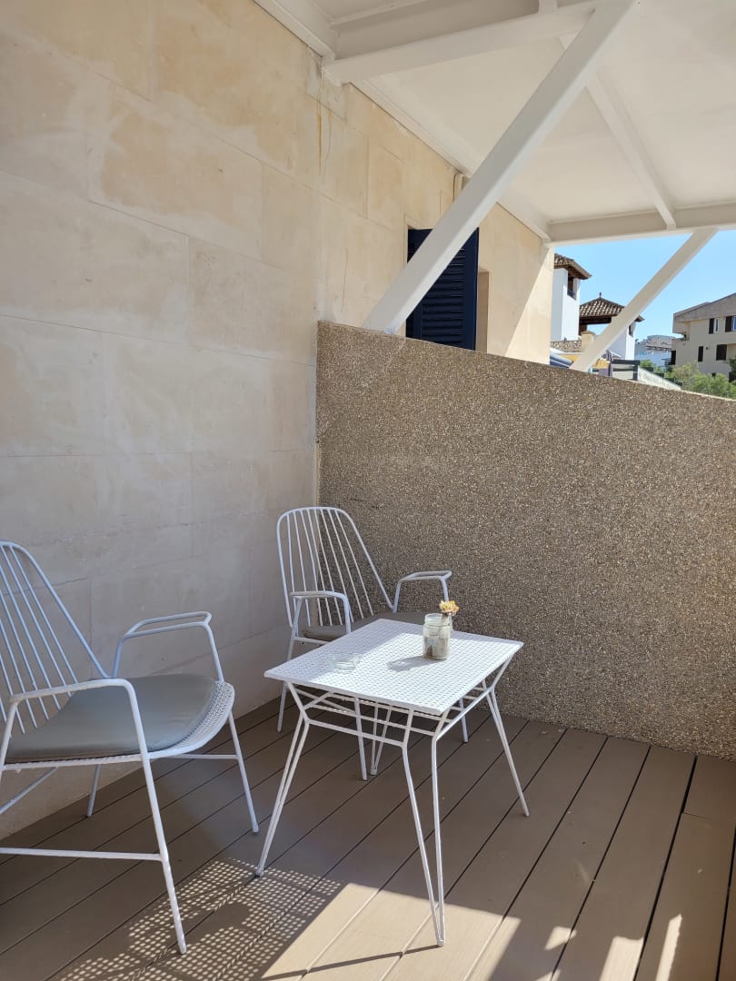 Zimmer 102. Balkon mit Sitzmöbeln