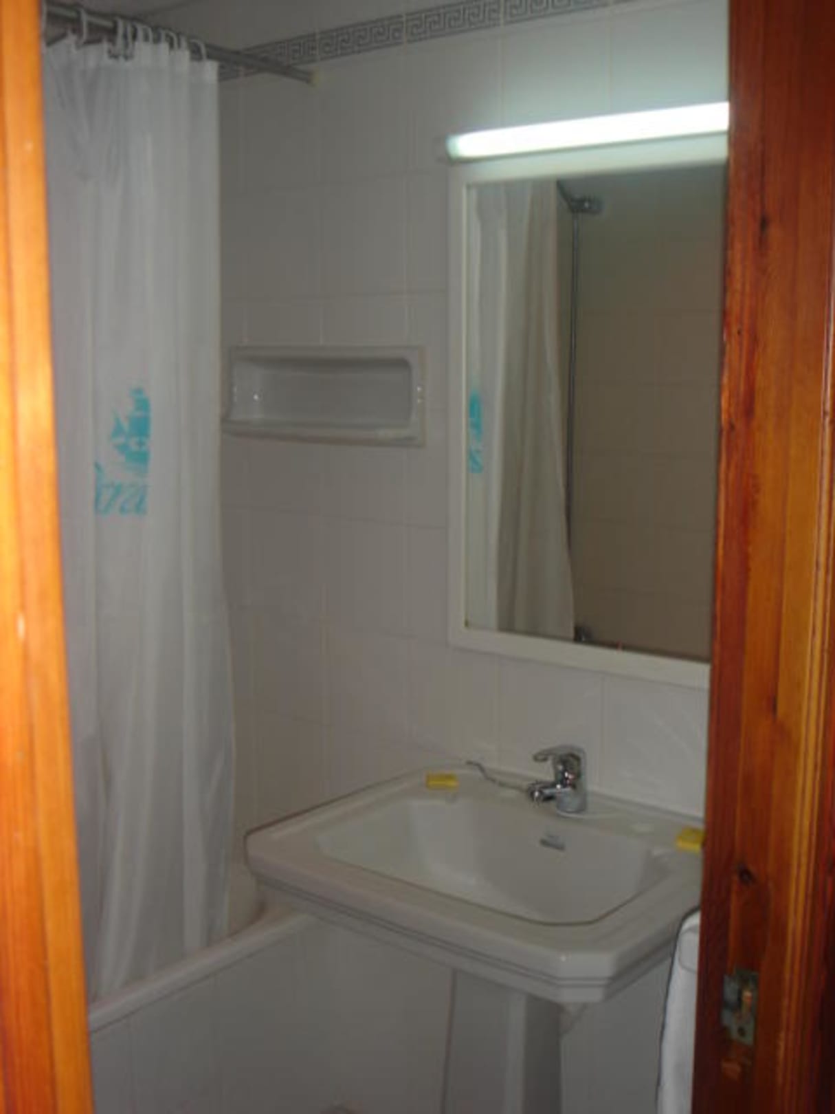 Hier nur ein kleiner Teil des Badezimmers, mit Badewanne, Haarfön, WC und Infrarot Wärme Lampe die über einen Lichtschalter zu betätigen ist und das ganze Badezimmer ausleuchtet.