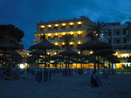 Der Blick vom Strand Richtung Hotel Carabela bei Nacht.