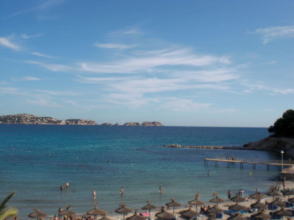 Der Blick vom Balkon der Zimmers auf den Strand.