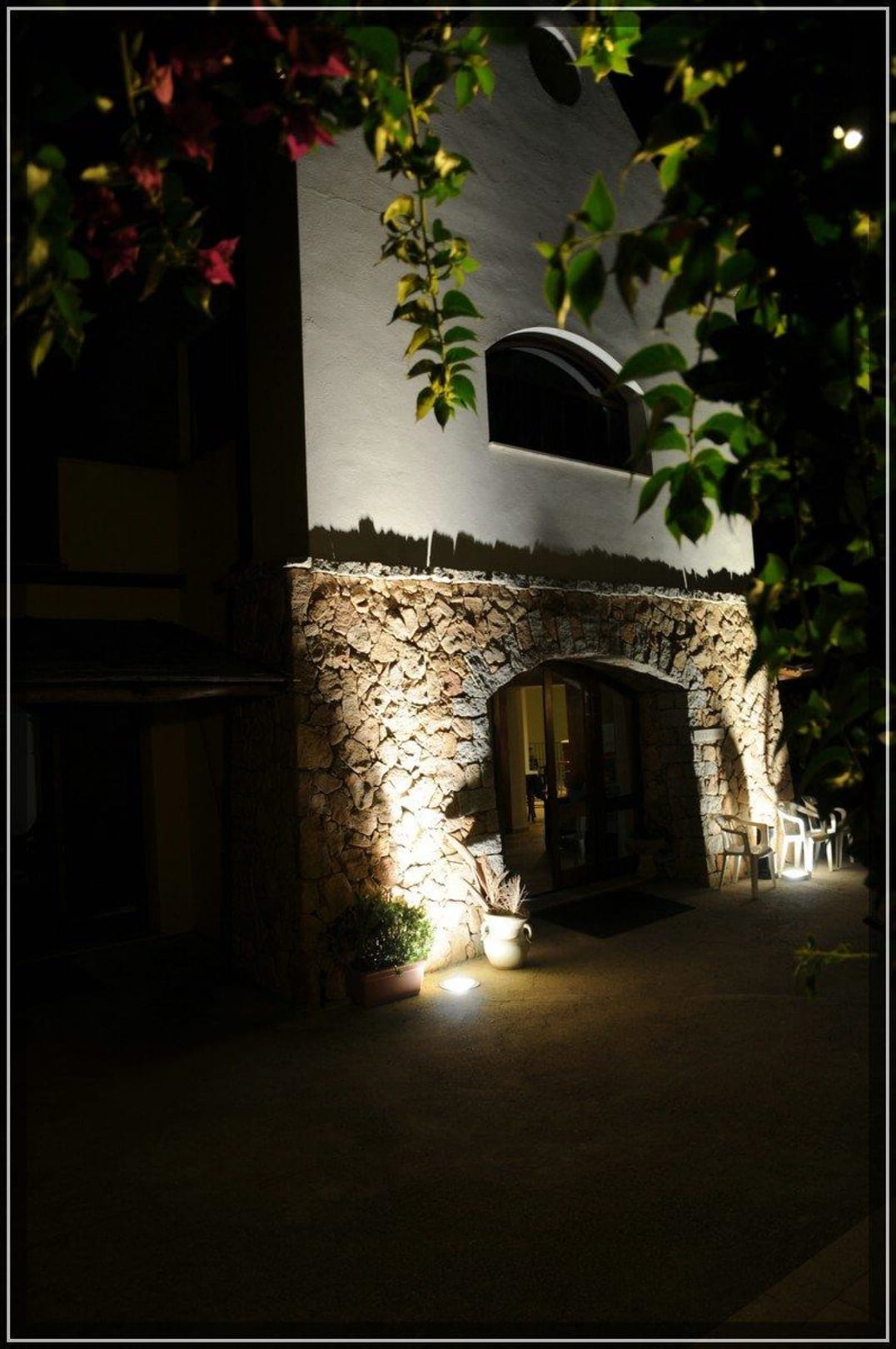 Eingang zur Rezpetion bei Nacht