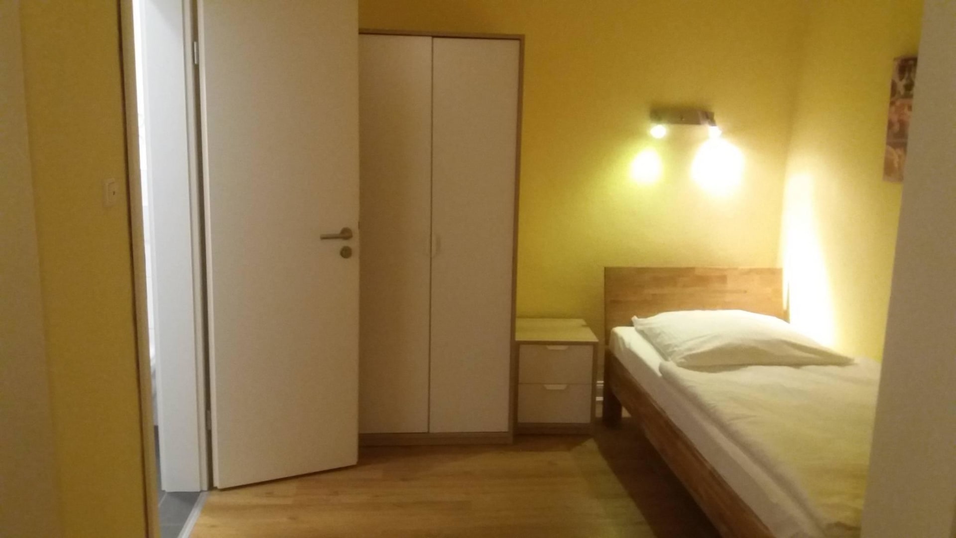 Zimmer / Bett Schrank Eingang Bad
