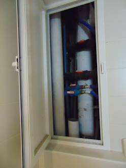 Hinter einer Klappe über dem WC
