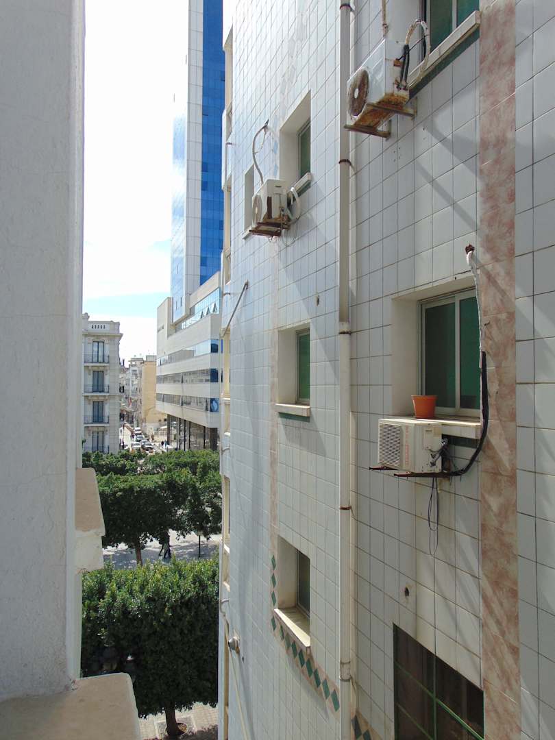Links aus dem Fenster sieht man einen kleinen Teil der Avenue Bourguiba