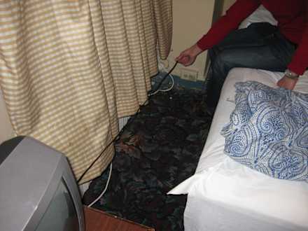 Als wir versucht haben, den TV anzuschlaten, mussten wir feststellen, dass das Kabel überhaupt nicht bis zur (einzigen) Steckdose reicht...