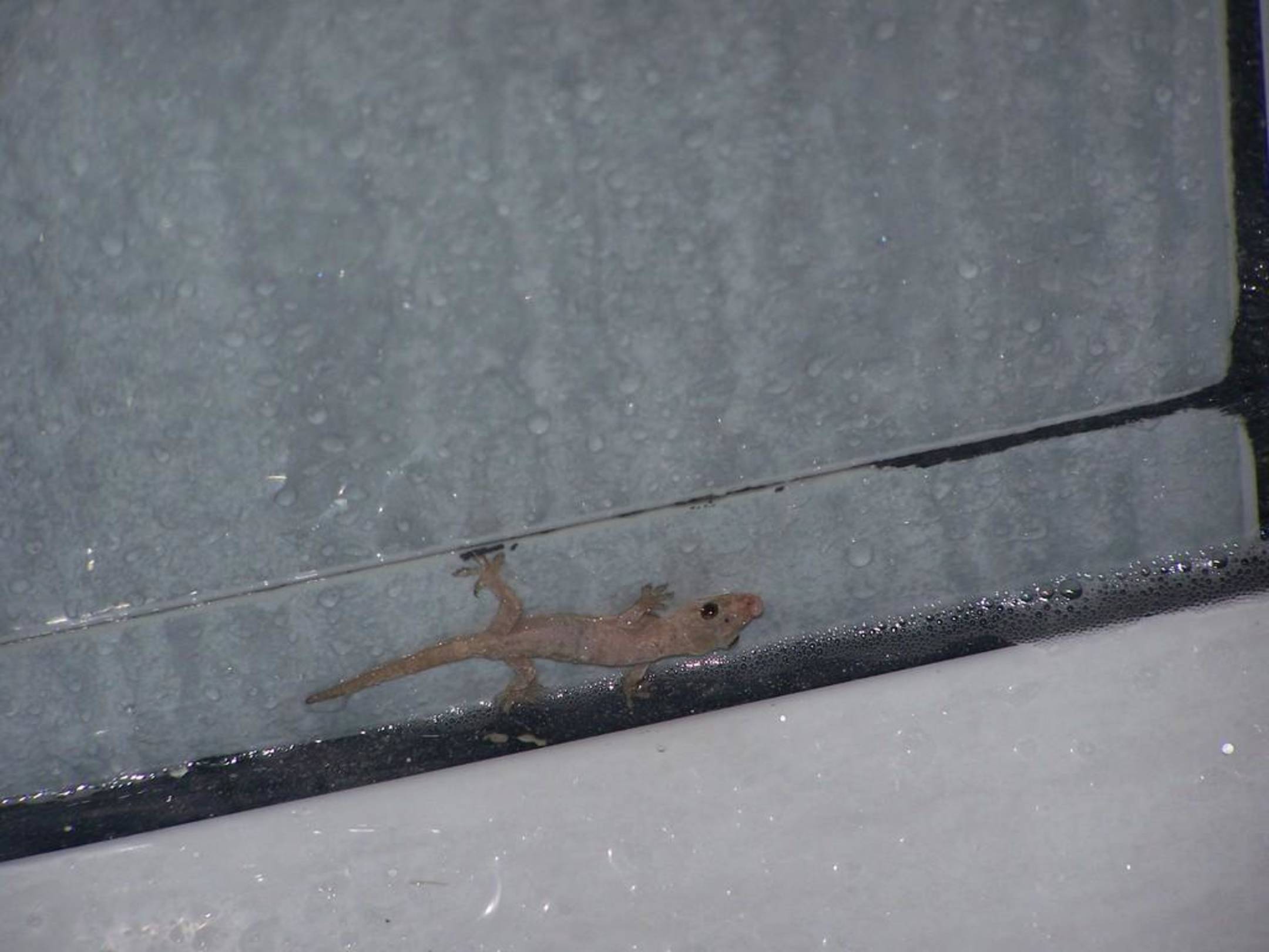 Verirrter Gecko in der Dusche