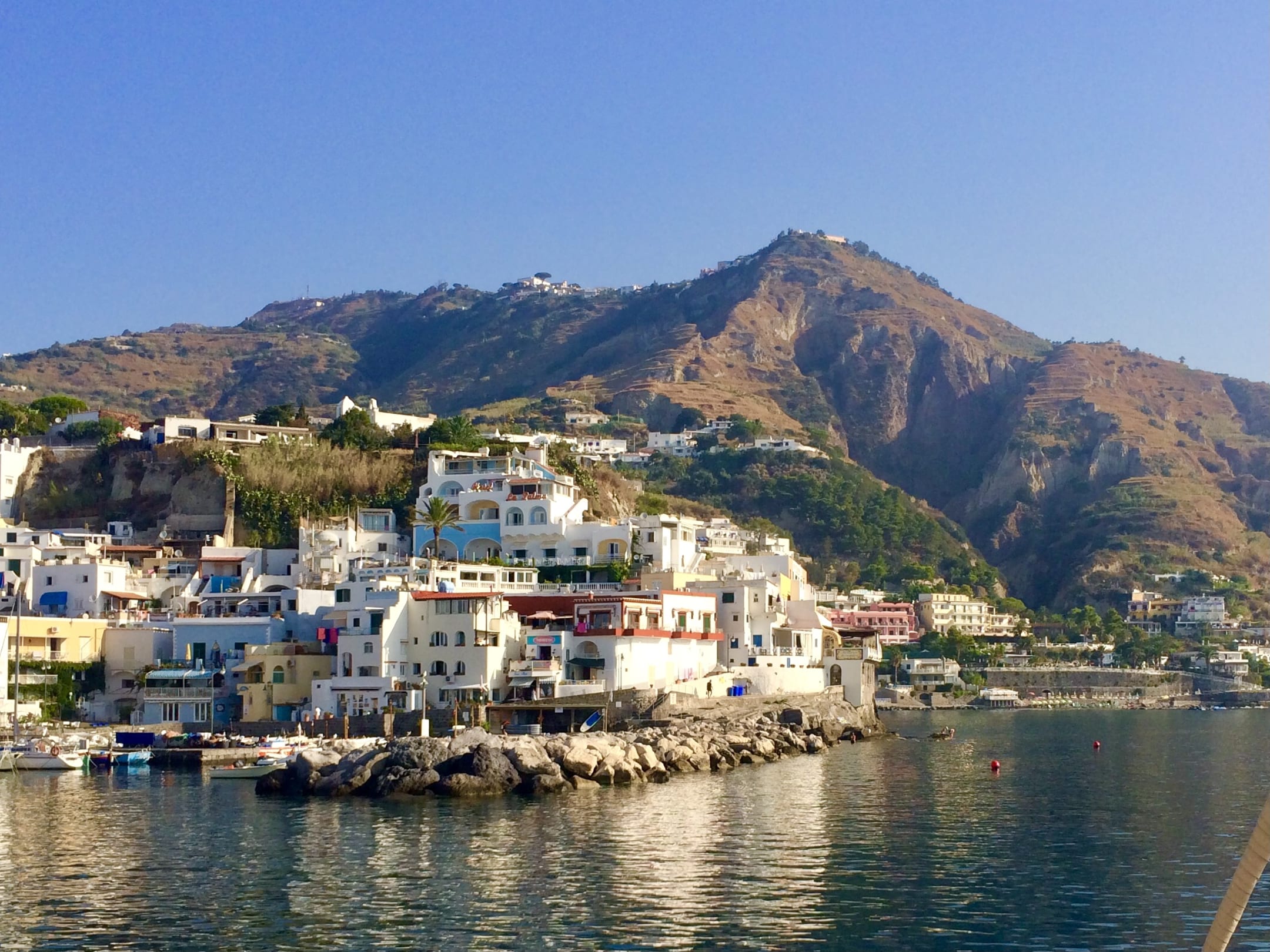 San‘t Angelo vom Meer aus. Rechts am Hang das Casa Rosa