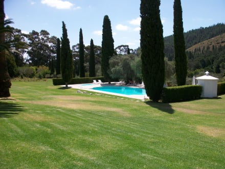 Blick auf den Pool vom Haupthaus