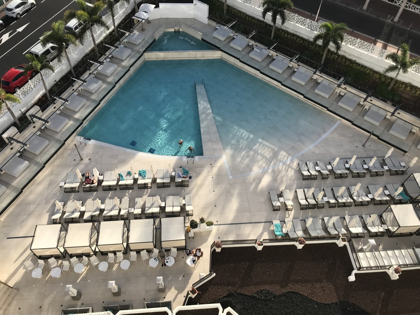 Blick auf den Pool vom 8. Stock aus.