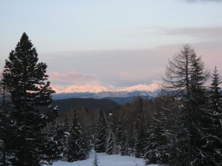 SonnenaufgangDer Ausblick aus einem der Zimmer direkt auf die Dolomiten.