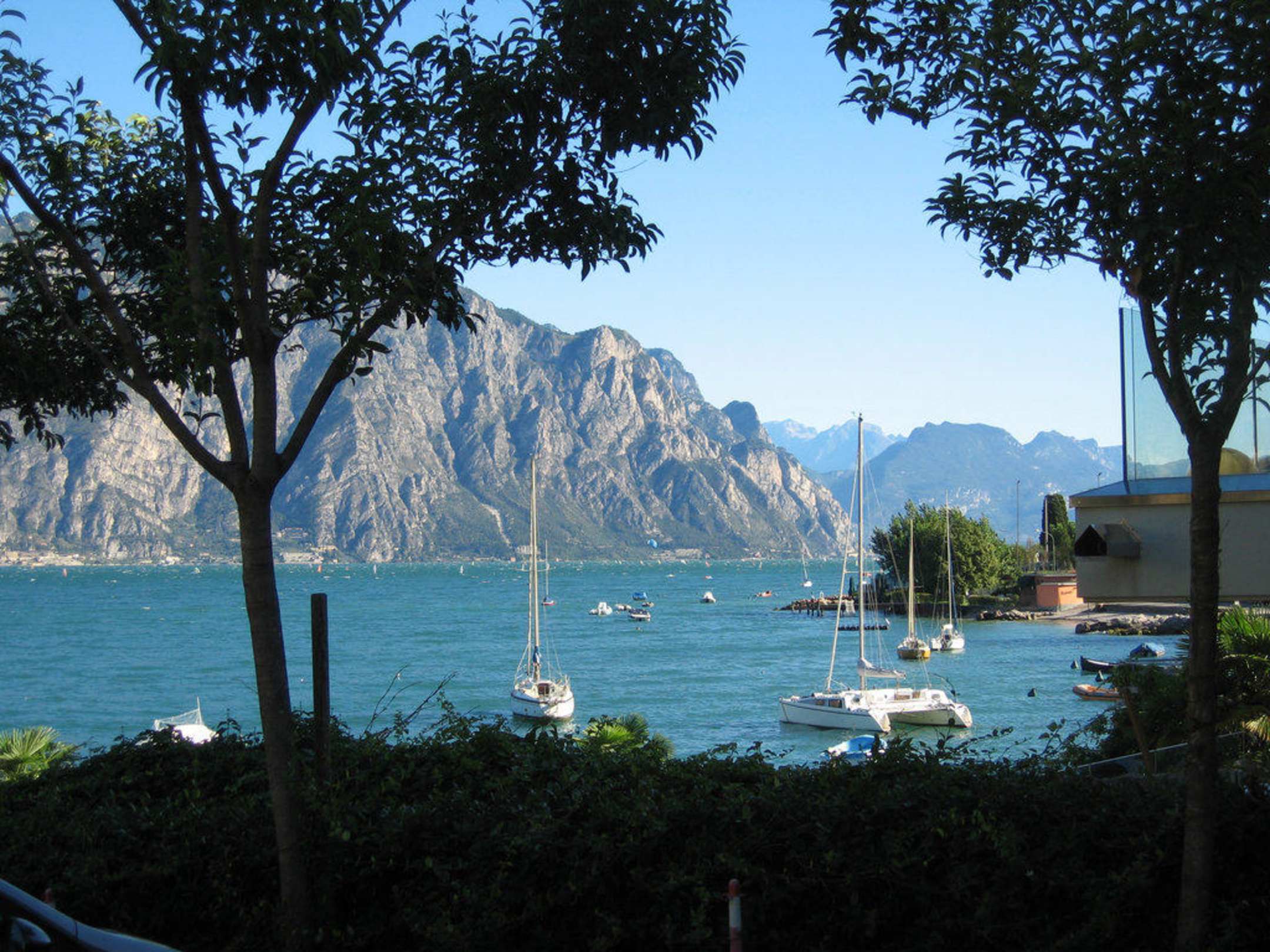 Blick vom Hotelparkplatz auf den See