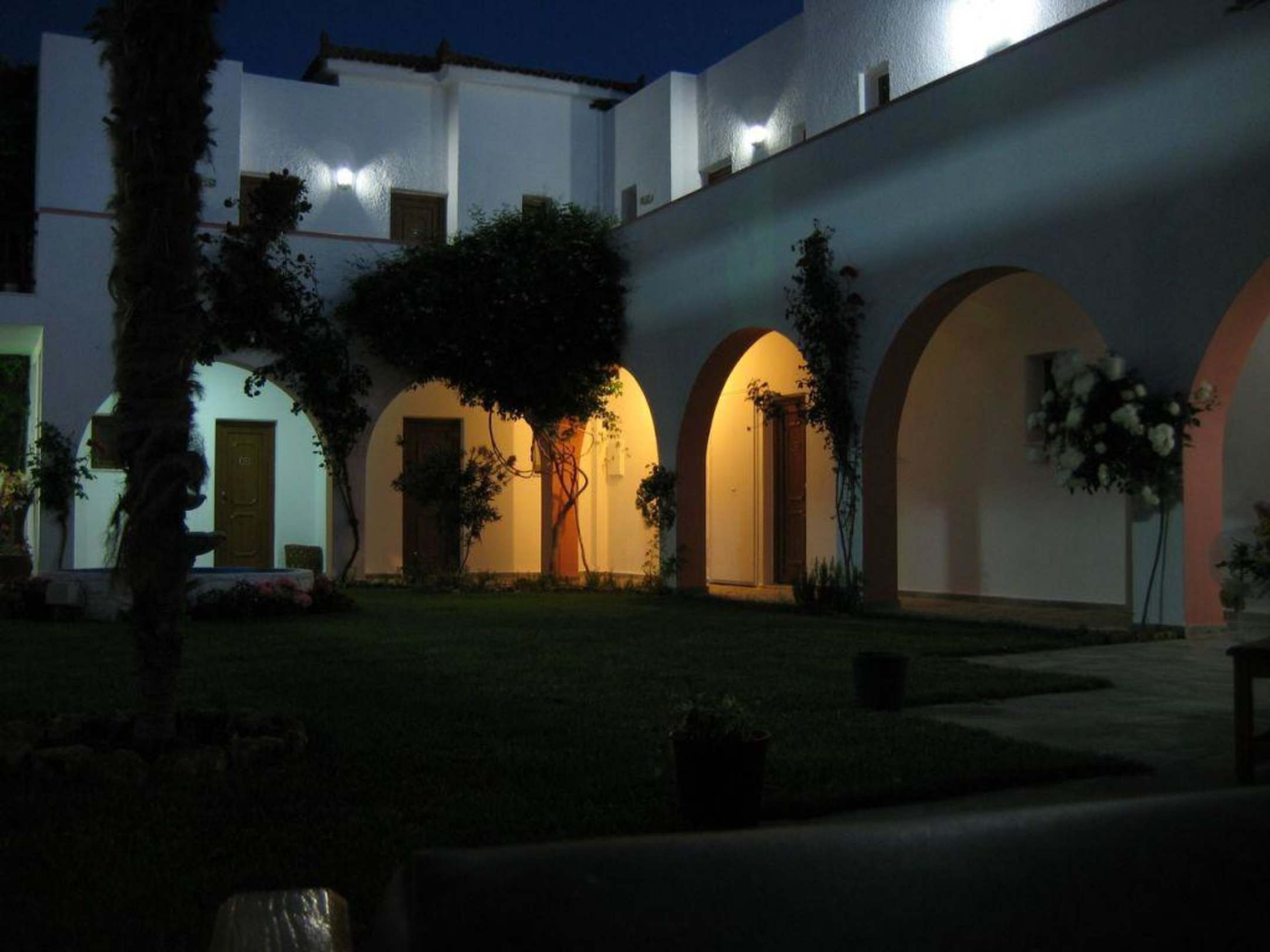 Der Innenhof des Castello Rosso nach Sonnenuntergang.