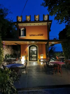 Im Eingangsbereich befindet sich der Frühstücksraum. Das Frühstückbuffet ist reichhaltig und gut. Das sehr freundliche Personal serviert je nach Wunsch Kaffee, Cappuccino, Tee etc. Ein Seiteneingang führt zur Anmeldung.