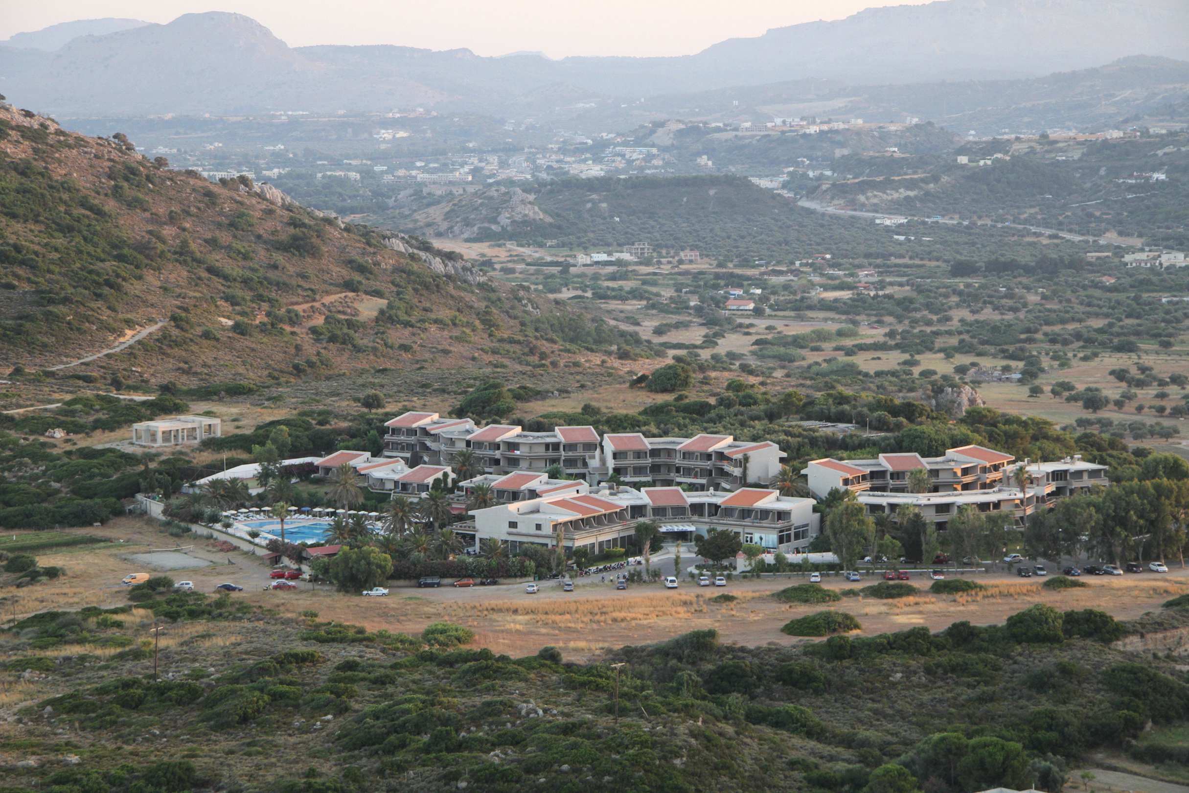 Blick vom Berg auf die Hotelanlage