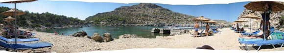 Anthony Quinn BuchtDie Anthony Quinn Bucht liegt ca. 10 Gehminuten vom Hotel entfernt, 2 Liegen mit einem Schirm kosten 7€