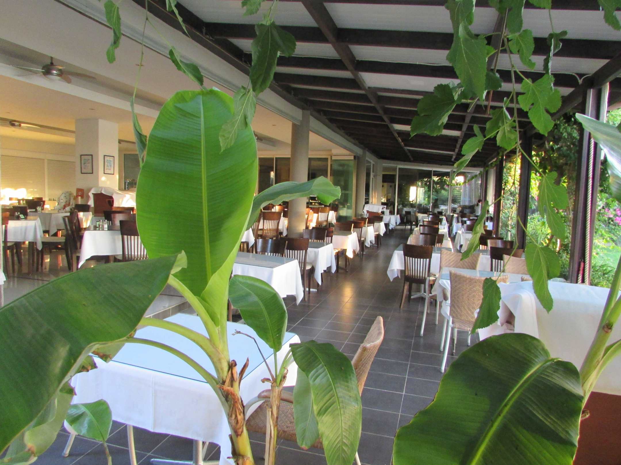 an Restaurant gibt es gleich ein Aussenrestaurant