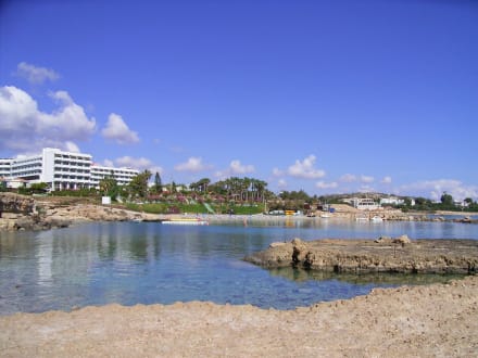 Blick vom gegenüberliegendem Ende der Badebucht auf den Strand
